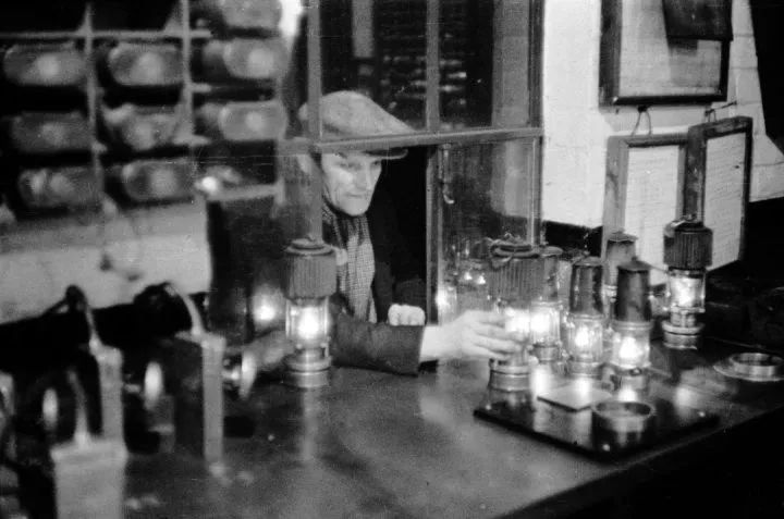 (1939.2.18,英国煤矿工人汤姆·肖顿在纽卡斯尔附近的一个煤矿开始夜班之前收集灯笼)