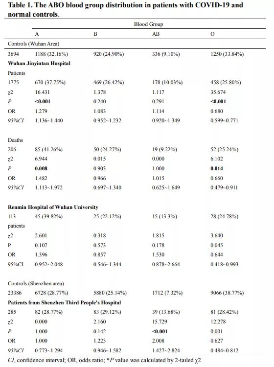 [3]Jiao Zhao, Yan Yang, Han-Ping Huang,et al,Relationship between the ABO Blood Group and the COVID-19 Susceptibility,doi: https://doi.org/10.1101/2020.03.11.20031096