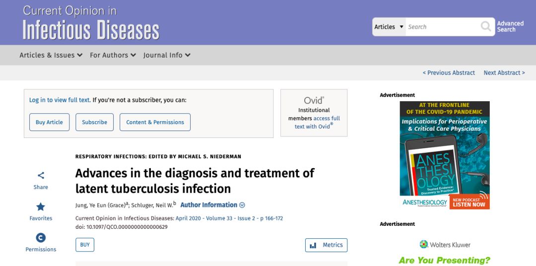 [1]Jung Ye Eun Grace,Schluger Neil W. Advances in the diagnosis and treatment of latent tuberculosis infection.[J]. Current opinion in infectious diseases,2020,33(2).