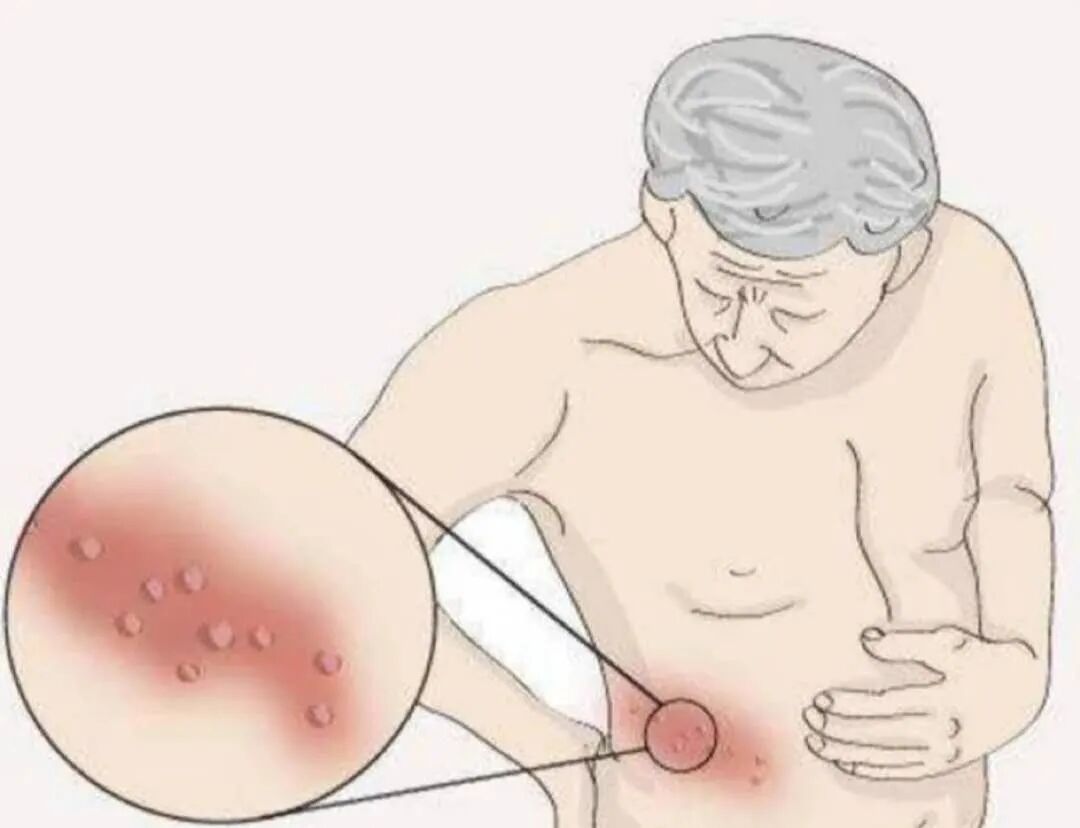 带状疱疹是由带状疱疹病毒引起的,沿周围神经分布的群集疱疹以及神经痛为特征的病毒性皮肤病,是脊髓后神经节潜伏的病毒激活所致,中医称缠腰蛇,发病好发于春秋二季。